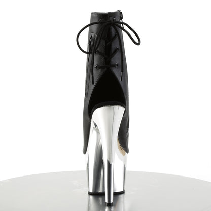 Style Name: ADORE-1018 Footwear Style: Platform Shoes Heel Height: 7 Inch (17.8cm) Platform Height: 2.8 Inch (7 cm) Colour: Black Faux Leather Brand: Pleaser SKU: ADO1018/BPU/SCH Range: 7" Heel and a 2 3/4" Platform Fitting: TRUE TO SIZE Material: PU Uppers, MICROFIBER Mid sole, PVC Lining Material, RUBBER Outer sole Brief Description: 7" Heel, 2 3/4" Chrome Plated PF Open Toe/Heel Ankle Boot HS Code: 6402.91.4050 Common Search terms : ADORE-1018, ADORE 1018, ADO1018/BPU/SCH, ADORE1018 and Pleasers