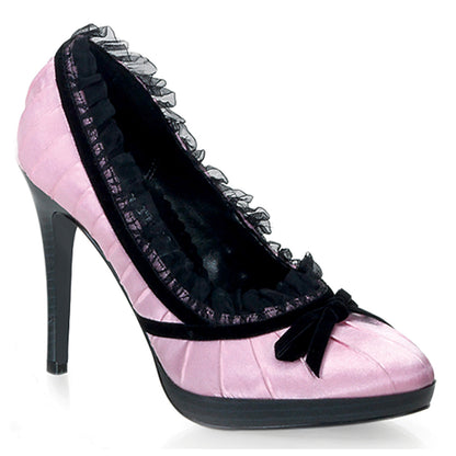 BLISS-38 Retro Glamour Pin Up Couture Platforms Pink-Blk Satin - Exotic Dance Wear Pin Up Couture Platforms *4 1/4" Stiletto Heel Mini-Platform Pump W/Bow from the Bliss Collection of Pin Up Couture Platforms designed and manufactured by Pleaser Shoes.