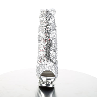 BLONDIE-R-1008 Pleaser Silver Sequins Sexy Platform Shoes (Pole Dancing Heels) - Pleaser BLONDIE-R-1008 Pleaser Heels Platform Shoes with a 6 Inch Heel and a 1 1/2 Inch Platform, Pleaser Shoes Ankle/Mid-Calf Boots Platform Shoes Pleasers made by Pleaser Shoes. These Pleaser heels have a 6 Inch Heel (15.2cms), and the platform is 1.5 Inches (3.8cm). These BLONDIE-R-1008 Pleasers Sexy Footwear Platform Shoes are, Silver Sequins in colour and are a perfect addition to any Pole Dancing Footwear Collection.