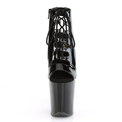 Style Name: FLAMINGO-800-20 Footwear Style: Platform Shoes Heel Height: 8 Inch (20.3cm) Platform Height: 4 Inch (10.2 cm) Colour: Black Patent Brand: Pleaser SKU: FLAM800-20/B/M Range: 8" Heel and a 4" Platform Fitting: TRUE TO SIZE Material: PAT Uppers, MICROFIBER Mid sole, SEMI-PU Lining Material, RUBBER Outer sole Brief Description: 8" Heel, 4" PF Open Toe/Heel Front Lace Up Ankle Bootie HS Code: 6402.99.3165 Common Search terms : FLAMINGO-800-20, FLAMINGO 800 20, FLAM800-20/B/M, FLAMINGO80020 and Pleasers