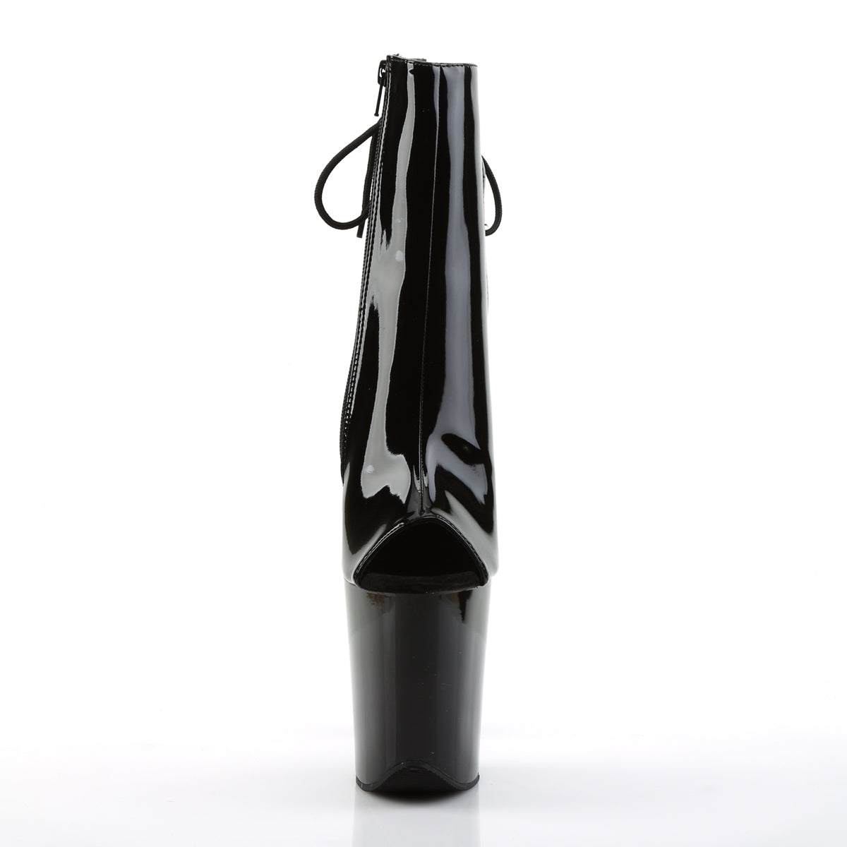 FLAMINGO-1018 Pleaser Platforms (Exotic Dancing Heels) - Sexy Pleaser Platforms Pole Dance Shoes made by Pleaser Ankle Boots. These Sexy Pole Dancing style Black Pat/Black Platforms Pole Dancing style High Heels have a 8 Inch (20.3 cm) High Heel and a 4 Inch (10.2 cm) Platform.