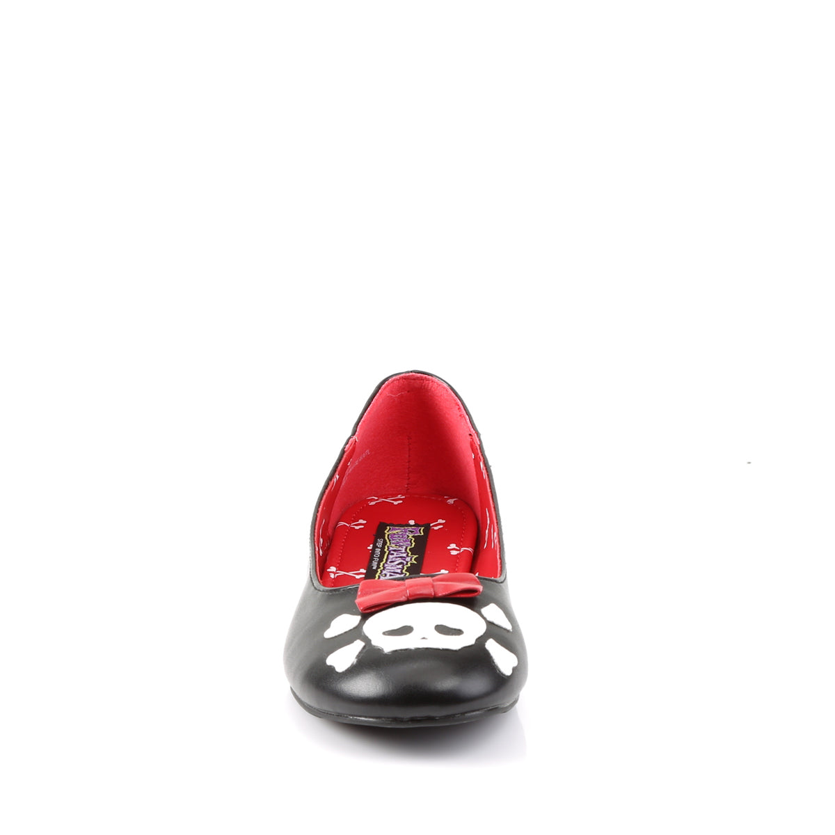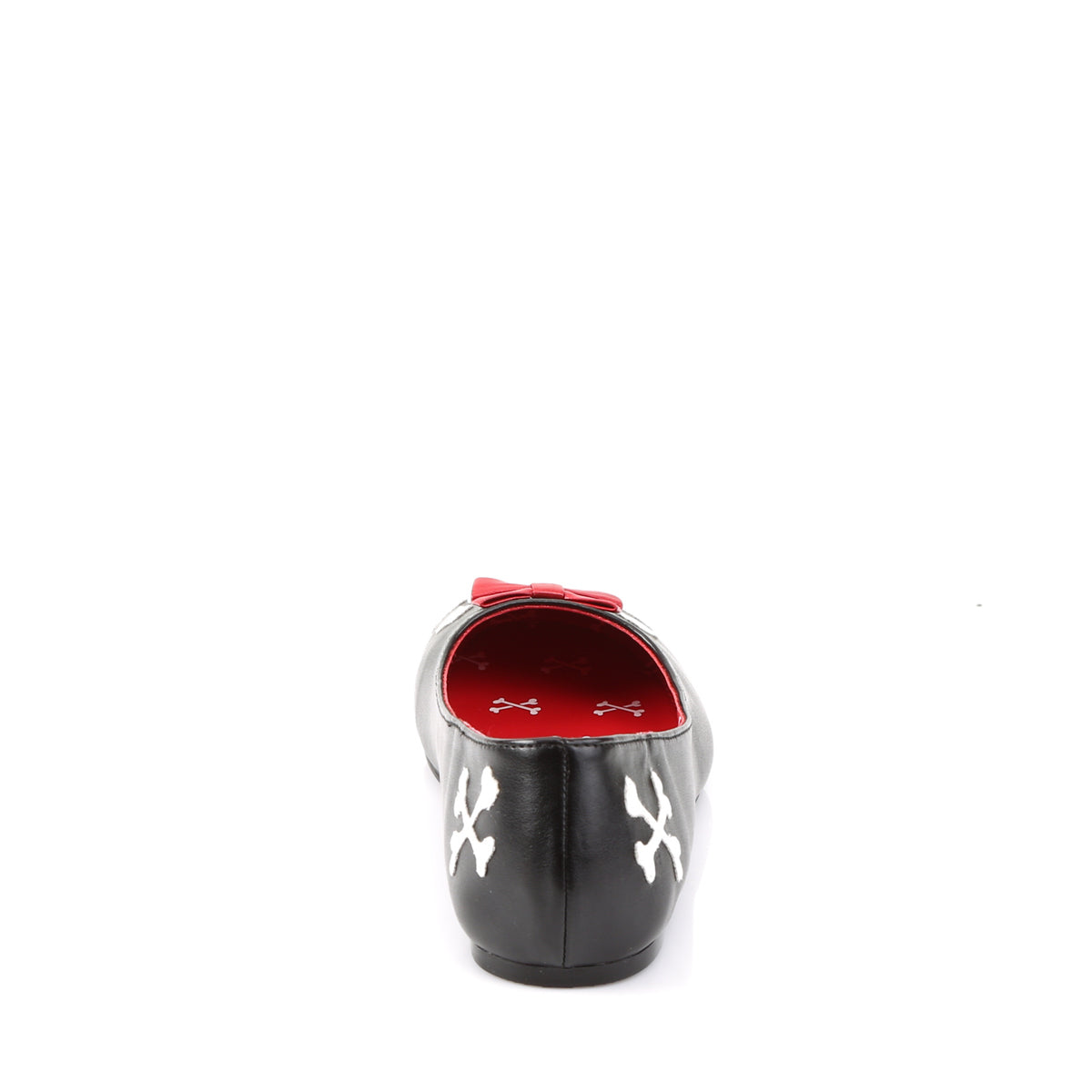 Brief Description: **Skull Print Ballet Flat with Decorative Bow.