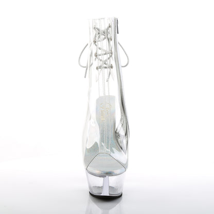 KISS-1018C Pleaser Clear Sexy Platform Shoes (Pole Dancing Heels) - Pleaser KISS-1018C Pleaser Heels Platform Shoes with a 6 Inch Heel and a 1 3/4 Inch Platform, Pleaser Shoes Ankle/Mid-Calf Boots Platform Shoes Pleasers made by Pleaser Shoes. These Pleaser heels have a 6 Inch Heel (15.2cms), and the platform is 1.8 Inches (4.5cm). These KISS-1018C Pleasers Sexy Footwear Platform Shoes are, Clear in colour and are a perfect addition to any Pole Dancing Footwear Collection.
