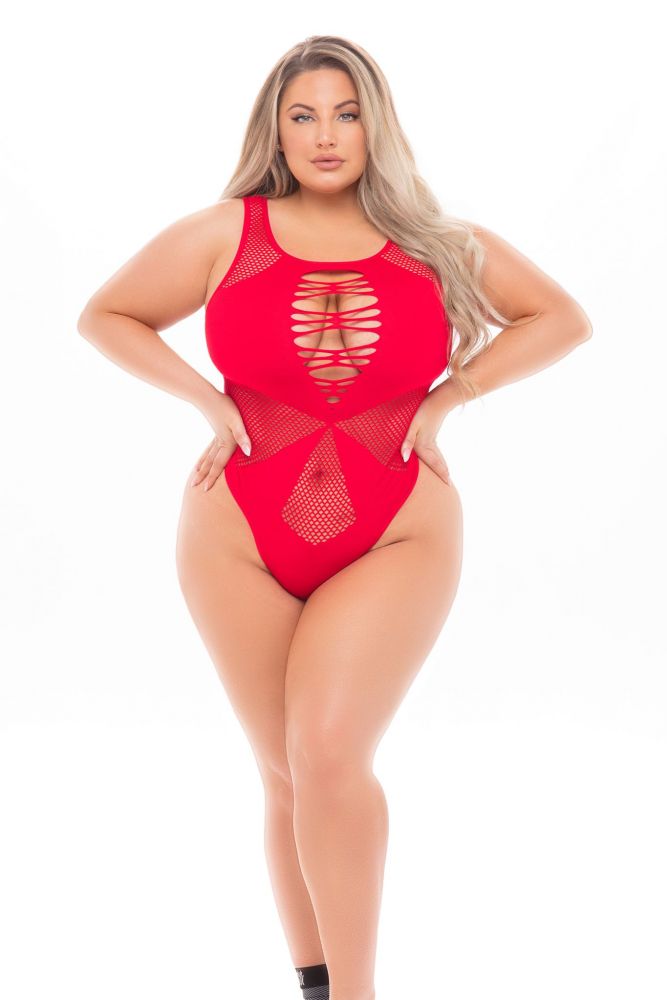 PL20035X Exotic Dancewear Lingerie Lipstick Duchess Highneck Bodysuit