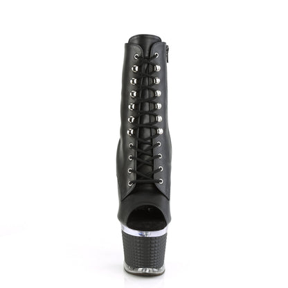SPECTATOR-1021 Pleaser Black Faux Leather Sexy Platform Shoes (Pole Dancing Heels) - Pleaser SPECTATOR-1021 Pleaser Heels Platform Shoes with a 7 Inch Heel and a 3 Inch Platform, Pleaser Shoes Ankle/Mid-Calf Boots Platform Shoes Pleasers made by Pleaser Shoes. These Pleaser heels have a 7 Inch Heel (17.8cms), and the platform is 3 Inches (7.6cm). These SPECTATOR-1021 Pleasers Sexy Footwear Platform Shoes are, Black Faux Leather in colour and are a perfect addition to any Pole Dancing Footwear Collection.