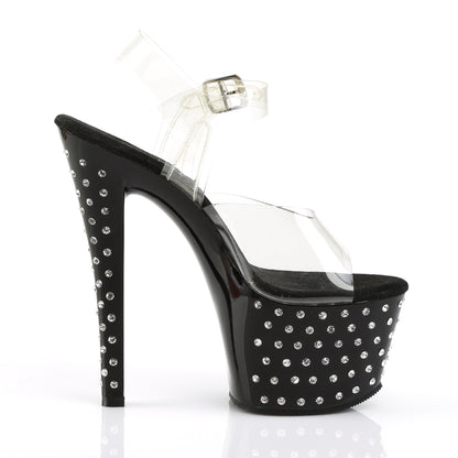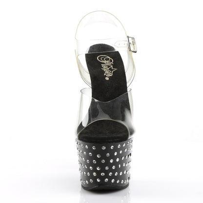 STARDUST-708 Pleaser Clear/Black Sexy Platform Shoes (Pole Dancing Heels) - Pleaser STARDUST-708 Pleaser Heels Platform Shoes with a 7 Inch Heel and a 2 3/4 Inch Platform, Pleaser Shoes Specialty Collection Platform Shoes Pleasers made by Pleaser Shoes. These Pleaser heels have a 7 Inch Heel (17.8cms), and the platform is 2.8 Inches (7cm). These STARDUST-708 Pleasers Sexy Footwear Platform Shoes are, Clear/Black in colour and are a perfect addition to any Pole Dancing Footwear Collection.